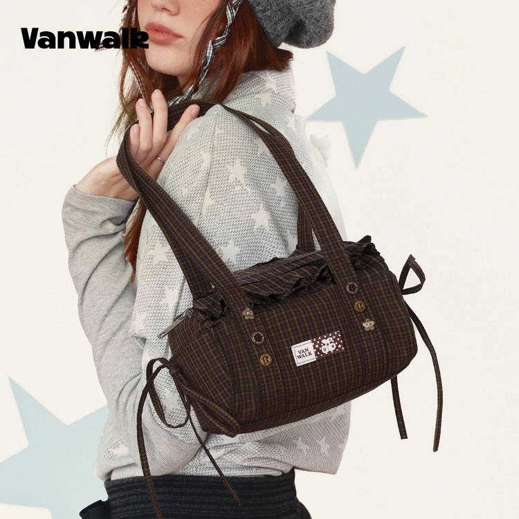 라운드 숄더백 / 체크 브라운